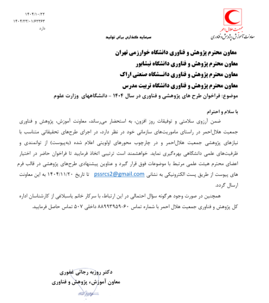 فراخوان اولویتهای پژوهش و فناوری جمعیت هلال احمر در سال 1404